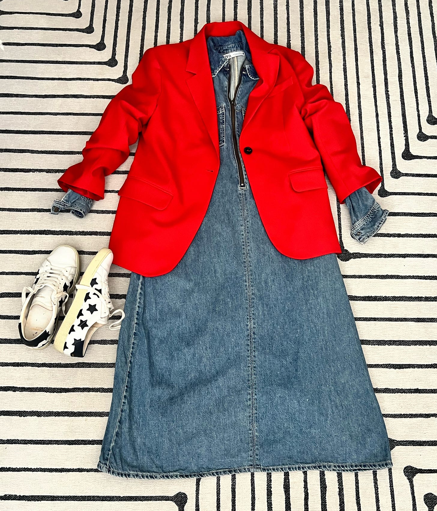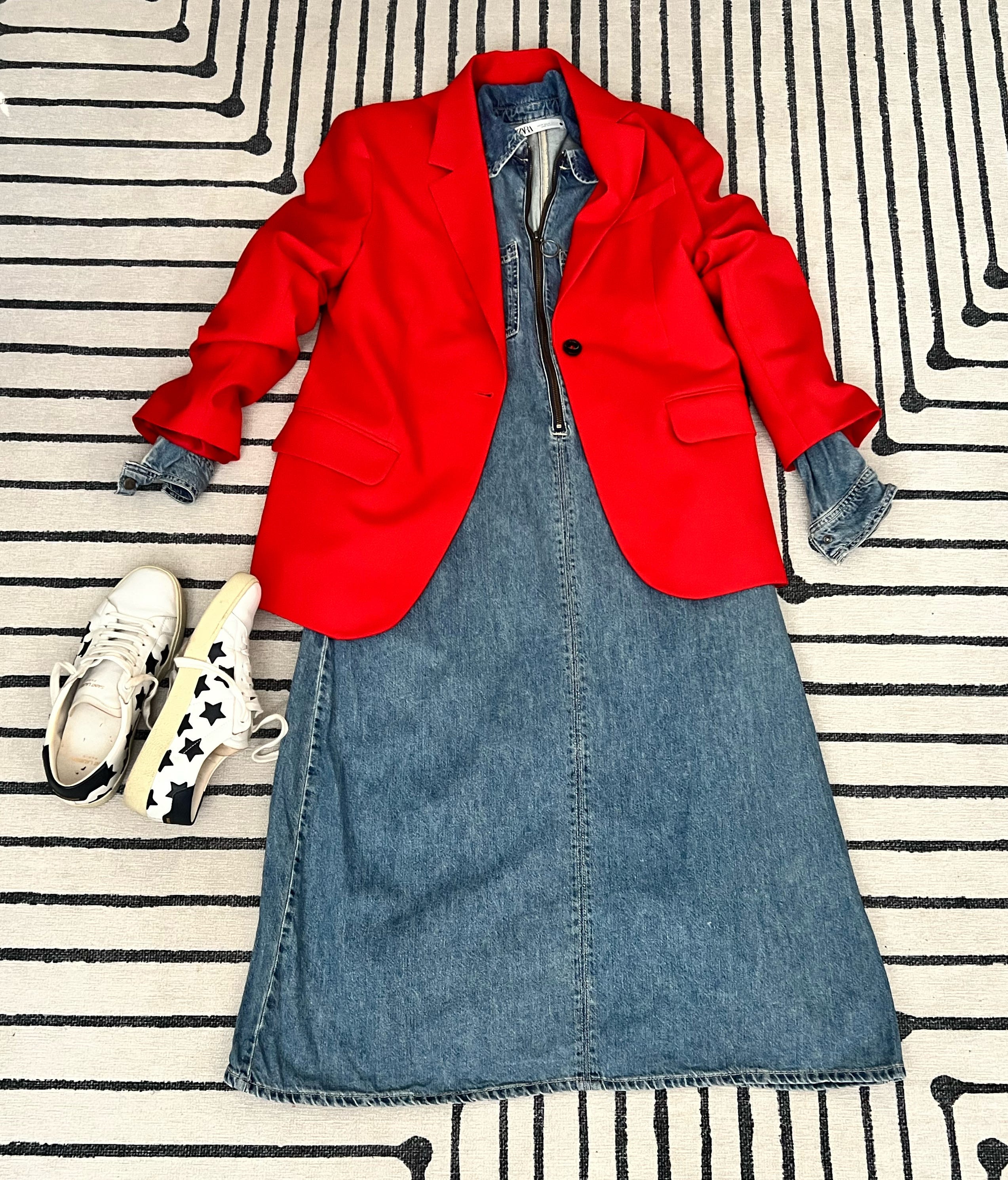 I’ve been looking for a red blazer for ages. Blazers are such a great wardrobe staple and I have a few in all the right sensible colours - black, white, navy - so I wanted something fun. And then I came across one that was half price in Arket. It was half price because it was on their summer clearance rail. It’s not winter woolly, no, but I think that makes it great to wear in a centrally heated office or a sweaty train. Winter warmth will come from what I layer under and over it. Here’s a few ways I’ll be wearing it.